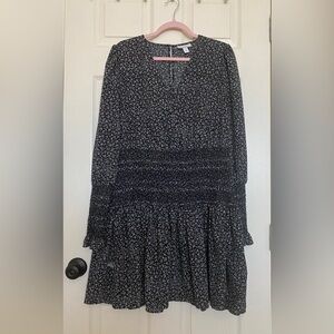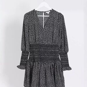 This black and white shirted waist mini dress is modern with full of fashion impact. Size is 12 TALL.
