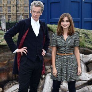 Topshop Silky Piped Tile Shirt Day Dress as seen on Clara Oswald in Doctor Who season 8 episode 6. Same style, brand and color. Screen accurate, not screen worn.