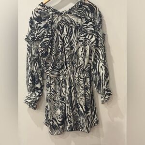 Topshop Size 10 ruffle v neck mini dress in tiger print Black and White
