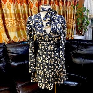 Topshop Size 6 Scarf Neck Top with Deep V and puff sleeves