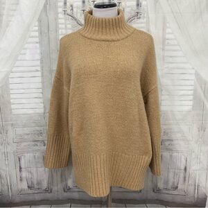 Topshop Size Medium Turtleneck Ribbed Knit Tan Brown Jumper Oversized Sweater