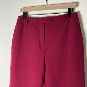 Slim Kick Flare Trousers in Magenta from Topshop. High rise. Side pockets. Faux back pocket. Belt loops. Size 8. Approximate measurements- Waist: 15” across. Rise: 12”. Inseam: 26”. Good preowned condition with no tears or stains.