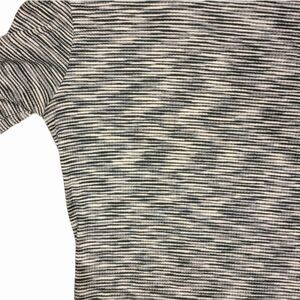 Lightweight great space dyed like pattern with small stripes. Knit with stretch to it. Black, cream, white, grey. Short sleeves. Probably about knee length. Like new.