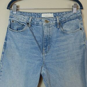 Topshop Straight Blue Distressed High-Waisted Jeans Size 30