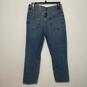 Topshop Straight Leg Jeans 28 Womens Button Fly Denim Distressed Open Knee