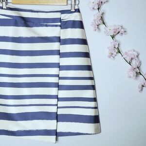 Features : Faux wrap, A-line, brushstroke nautical stripes, back zip closure, side seam pockets