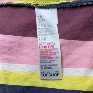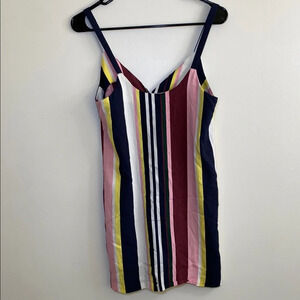 Vibrant mini dress with vertical stripes. Button-down design. Perfect for casual outings.