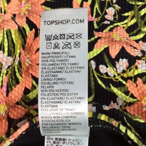 Get ready to make a statement on your next beach vacation with this Topshop one-piece swimsuit in a multicolor lily floral pattern. The underwired swim top style provides support while the cheeky swim bottom style adds a touch of playfulness to your look. The spaghetti straps with an accent strap detail complete the feminine and stylish design. Made of a polyester blend material, this swimsuit features a built-in bra, backless design, and stretchy fabric for a comfortable and flattering fit. Perfect for a beach day or a cruise vacation, this one-piece suit is a must-have for any fashion-forward woman.