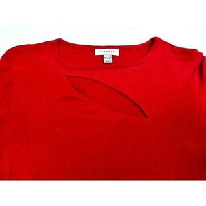 Topshop Sz 8-10 Womens Red Long Sleeve Chest Slit Snap Bodysuit Viscose Elastane