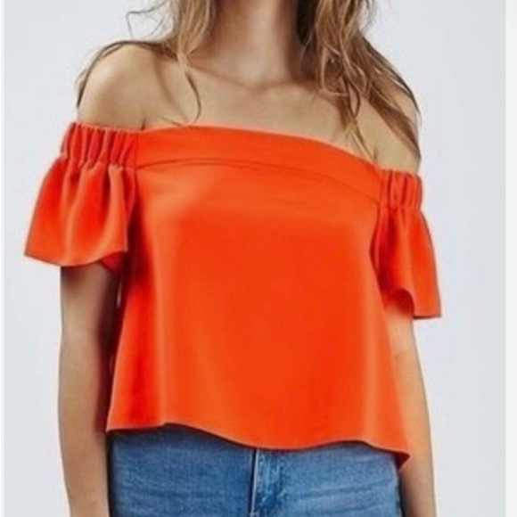 Gorgeous off the shoulder top. Beautiful orange red color. New with tags. Great for any occasion. Size 8