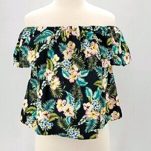 Topshop Tropical Print Off Shoulder Crop Top Size 6P