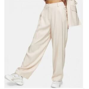 Topshop Pants Pleated Front Straight Leg Tailored Trousers Light Sand NWT 12