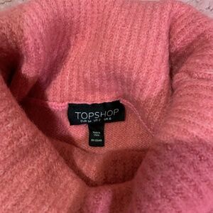 Feels like soft cashmere, teddy plush, hot pink. Cozy long turtleneck. size 2 US. By Topshop. New condition.