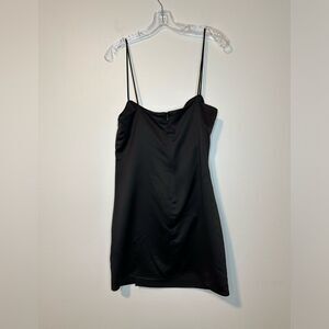 Great condition Twist Front Mini Slip Dress. Black. This satiny square-neck mini features a shapely front twist and a stem-showing slit. ● Hidden back-zip closure ● Square neck ● 100% polyester