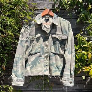 Camouflage Printed Jacket w/Button Front Closure & Cargo Pockets