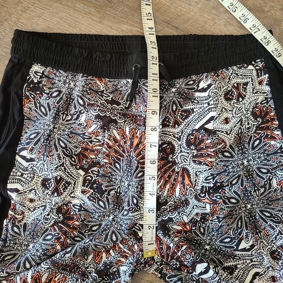 Topshop US Women's Size 10 Boho Jogger Pants Black Orange Floral Drawstring