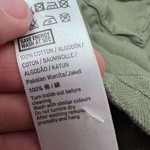 Trendy Topshop army green utility jacket — 100% cotton with light factory distressing for a casual, lived-in look. Features button front, 4 patch pockets, and a relaxed fit perfect for layering. Great for spring, fall, and everyday wear.