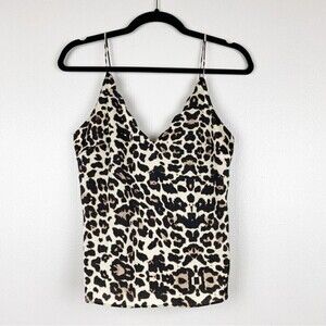 Topshop V-Neck Leopard Print Lightweight Scalloped Cami Tank Size 2