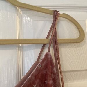 NWT velvet pink dress with silver star details and button down front Thin straps and tie detail Size 6