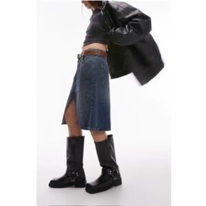 Topshop Vented Denim Skirt, Mid Blue, Size 8, NWT
