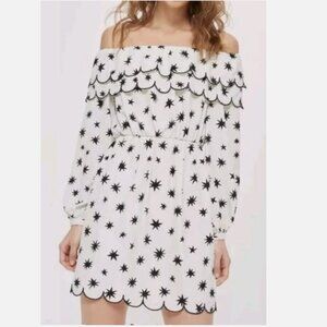 Topshop White Dress with Black Stars Off the Shoulder Mini