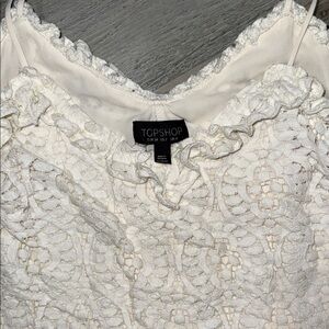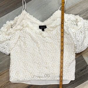 Elegant Topshop blouse with intricate floral lace. Perfect for any occasion.