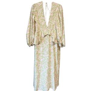 Topshop White Ivory Print Double V Floral Satin Maxi Dress