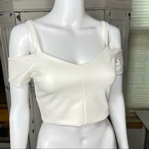 Topshop White Ivory Cold Shoulder Short Cap Sleeves Crop Zipper Back Top Size 0