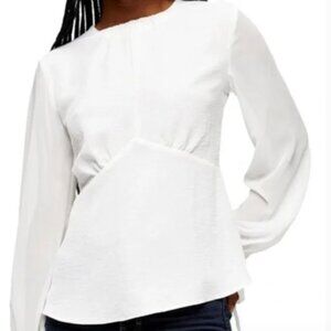Beautiful white blouse with detailing around bust and a tie at the back of the neck with open back. Top has ties at the wrists, size medium from Topshop.