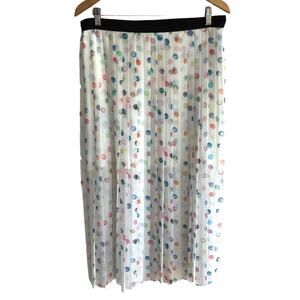 Topshop White Pleated Polka Dot Pleated Midi Skirt Size 10
