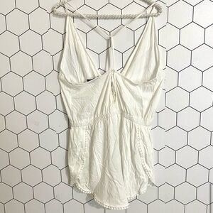 Topshop White Pom Pom Trim Faux Wrap Sleeveless Beach Romper SIZE MEDIUM