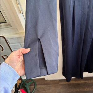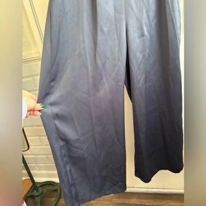 Topshop Wide Leg Open Back Satin Jumpsuit in navy blue. Size 6