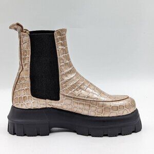 Topshop Women Alpha Patent Leather Croc Print Chelsea Platform Boots 7US EUR38
