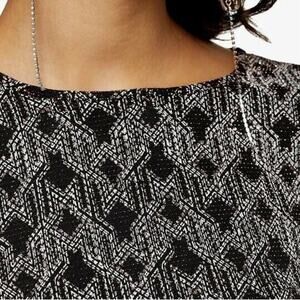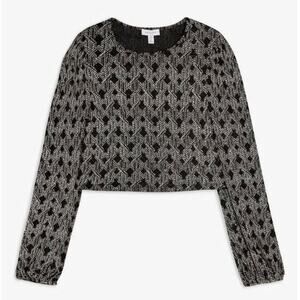Topshop Women Black Lurex Zigzag Party Balloon Sleeve Cropped Blouse Size US 8