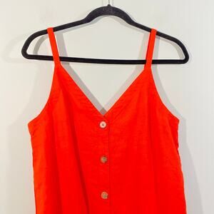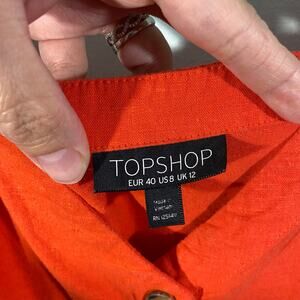 Topshop Women Orange Button Up Linen Blend Sleeveless Mini Dress Size US 8