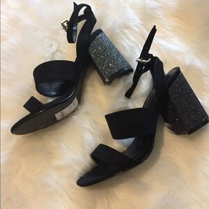 Topshop Women's Black Chunky Sparking Heel Strappy Sandals, Size 6.5