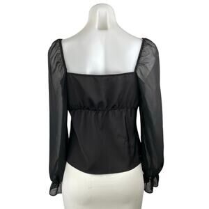 Topshop Women's Black Ruffle Ruched Front Sheer Long Puff Sleeve Blouse Top Sz 4