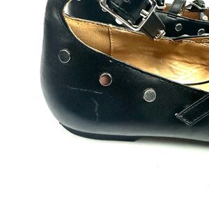 Topshop Women's Black Silver Studded Pointy Toe Strappy Flats Sz 5/38