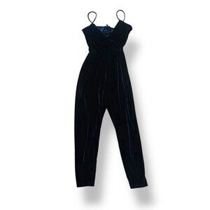 Topshop Women’s Black Velvet Jumpsuit Size 2 US Spaghetti Strap Crisscross