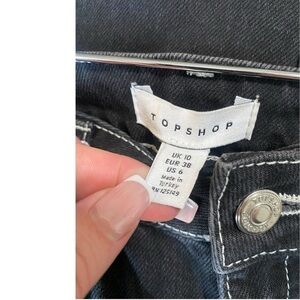 Topshop Women's Black with White Contrast Stitching Midi Skirt I Size: 6