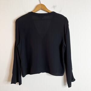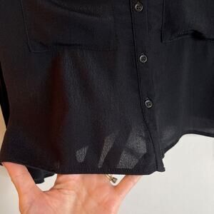 Topshop Women's Blouse 4 Black Slit Long Sleeve V-Neck Button Front Sheer Top