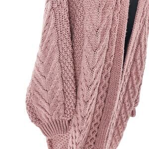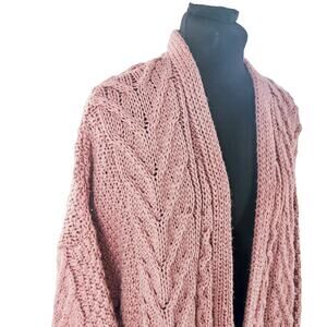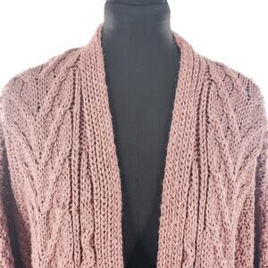 Topshop Women’s Chunky Cable Knit Long Open Front Cardigan Pink Rose Size 8