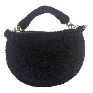 Topshop Women’s Florence Black Teddy Shoulder Bag with Silver Hardware