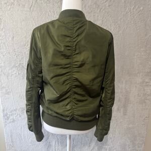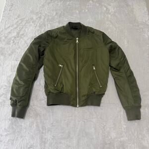 Topshop Women's Long Sleeve Full Zip Bomber Jacket 2 Green Pockets Lined