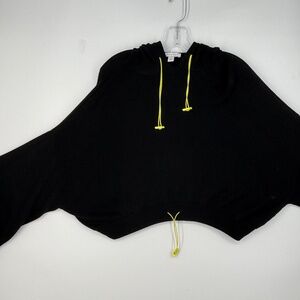 Topshop Womens Medium Pullover Cropped Sweater Black Yellow Drawstring Oversized