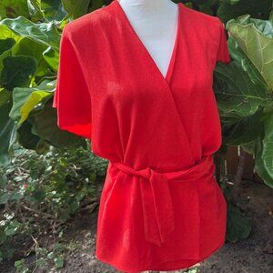 Topshop Women's Red Wrap Tie Waist Blouse Size 8 Career Office Feminine
