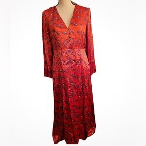 Topshop Dress Women's 4 Satin Floral Red Midi 2 Front Slits Split Back Neckline size 6 In fairly good preowned condition. Does have somewhere on the back barely noticeable have any questions feel free to ask.