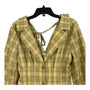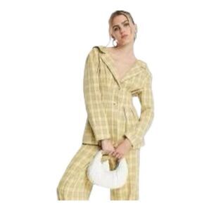 Topshop Womens Size 4 Off Shoulder Blazer In Yellow Plaid