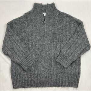 Topshop Women's Size 4-6 Gray 1/4 Zip Oversized Fuzzy Pullover Sweater Mock Neck