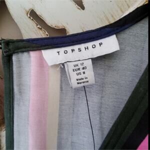 Multicolor stripe faux wrap satin tie front mini dress by Topshop.